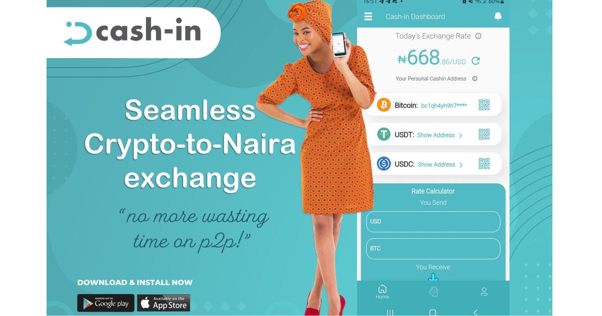 Cash-in.app is a platform that enables users to instantly convert cryptocurrency to Nigerian Naira with no service fees.