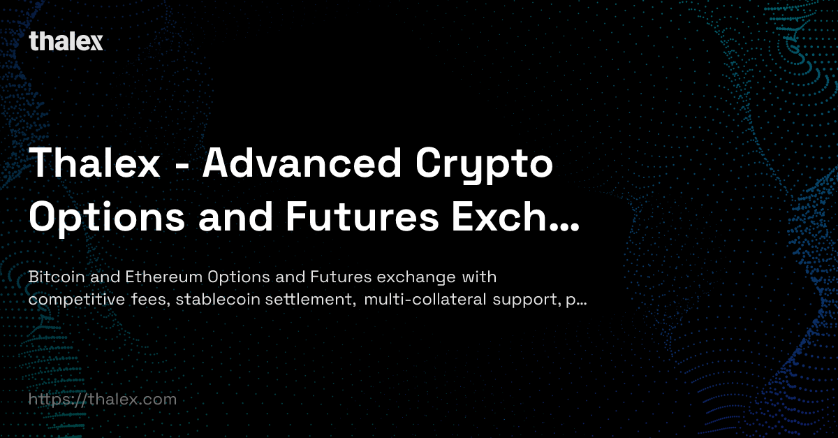 Thalex is a crypto-native derivatives exchange that enables trading of stablecoin-settled options, perpetuals, and futures on Bitcoin and Ethereum.